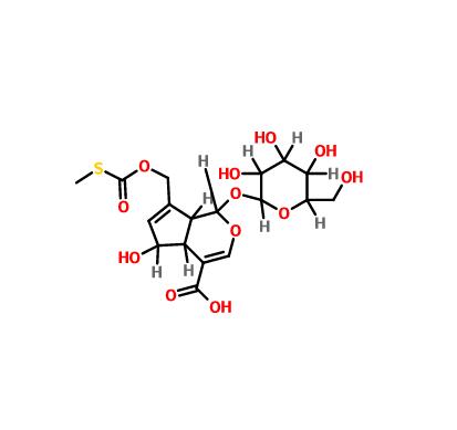 【英文別稱】 (1S,4aS,5S,7aS)-1-(β-D-Glucopyranosyloxy)-5-hydroxy-7-({[(methyls ulfanyl)carbonyl]oxy}methyl)-1,4a,5,7a-tetrahydrocyclopenta[c]pyr an-4-carboxylic acid
