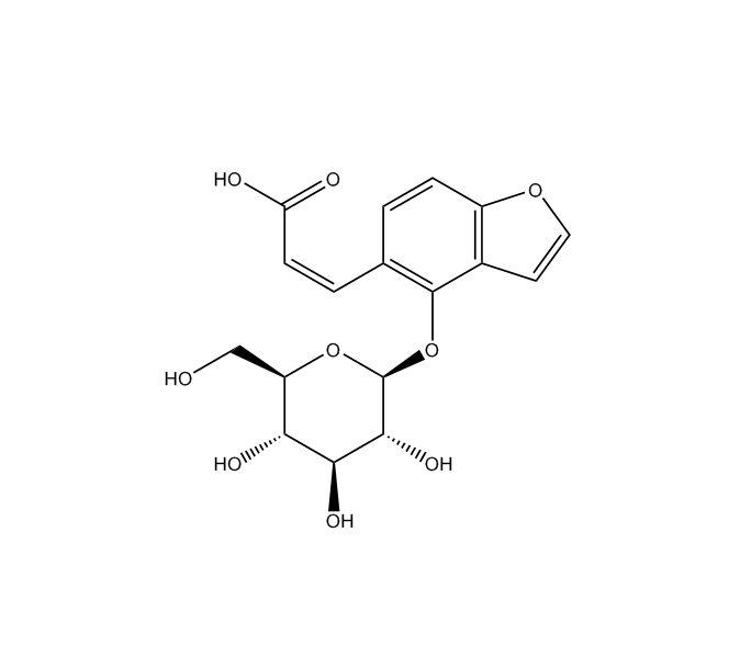 【英文別稱】 2-Propenoic acid, 3-[4-(β-D-glucopyranosyloxy)-5-benzofuranyl]-, (2Z)-